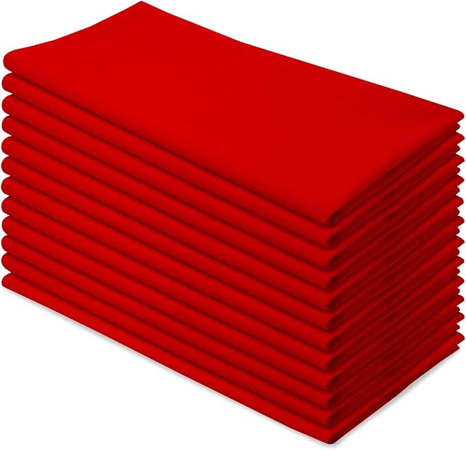 Aunti Em's Kitchen Flour Sack Dish Towels - Natural Cotton for Embroidery and Drying Glass, Hand, Dinnerware - Plain, Thick, Zero-Lint, Highly Absorbent - Set of 12, 27 x 27 Inch, Red