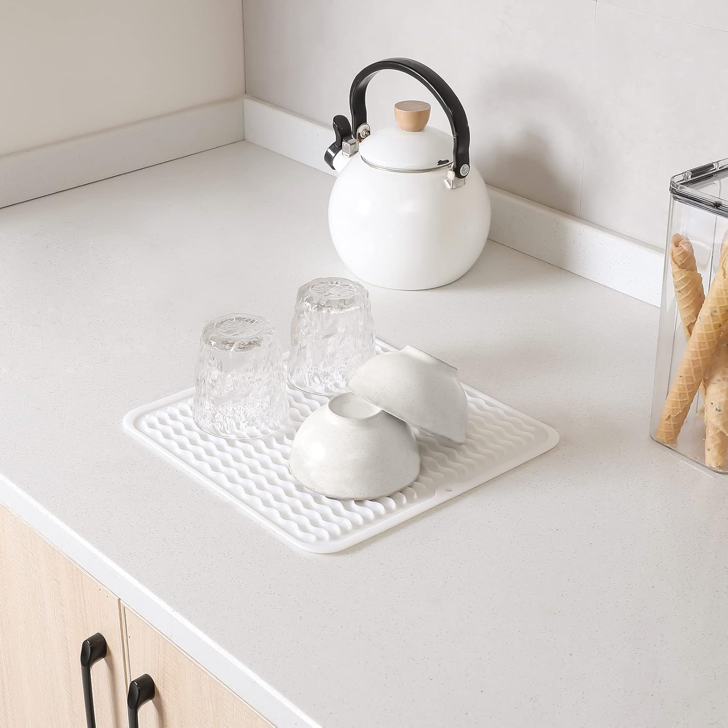 Silicone Dish Drying Mat for Multiple Usage,Easy clean,Eco-friendly,Heat-resistant Silicone Mat for Kitchen Counter or Sink,Refrigerator or Drawer liner White M 12 inches x 12 inches