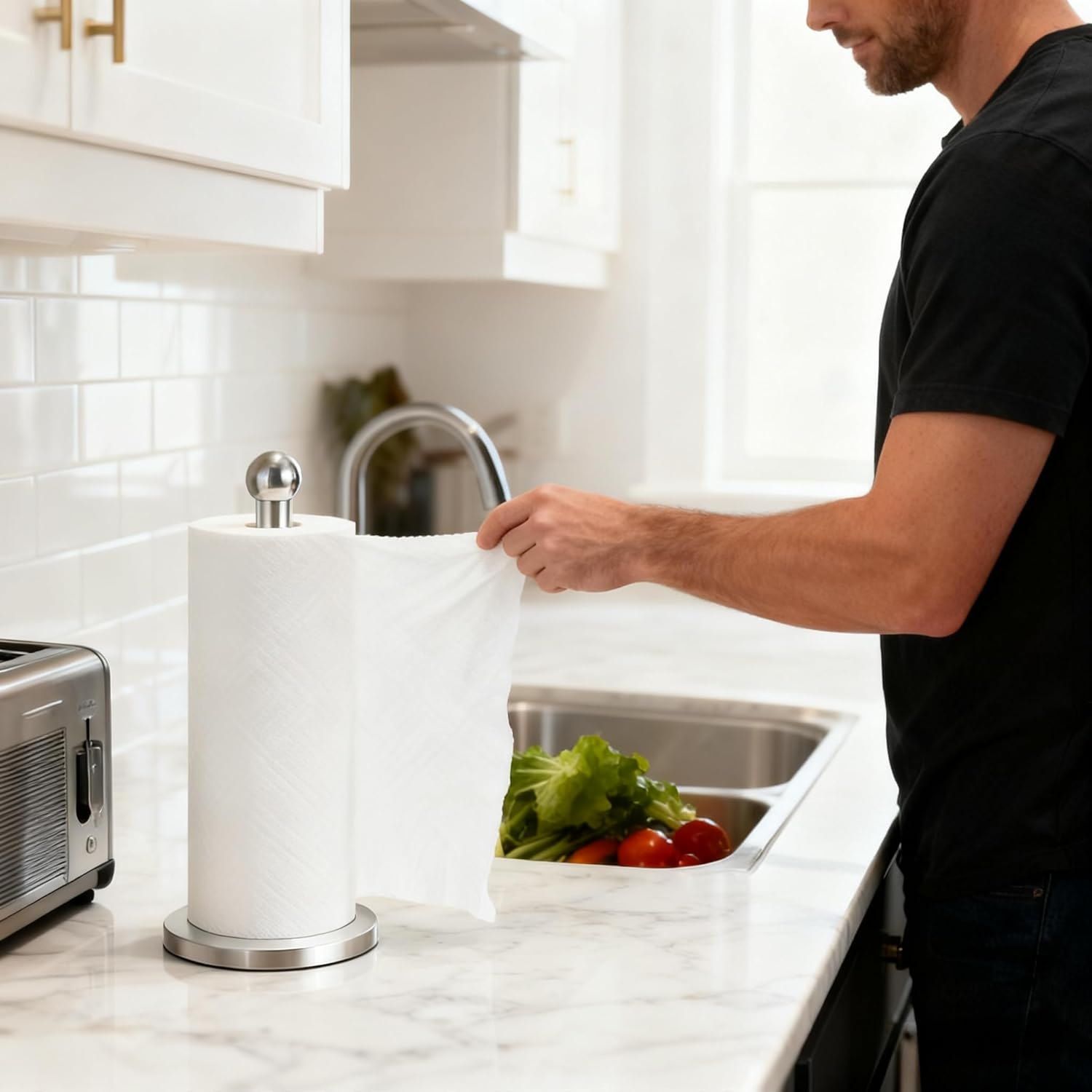 - 【Heavy Duty Weighted Base】: The countertop paper towel holder has a weighted base to prevent it from tipping over and to ensure it stays firmly in place when you tear off a sheet of paper towel.