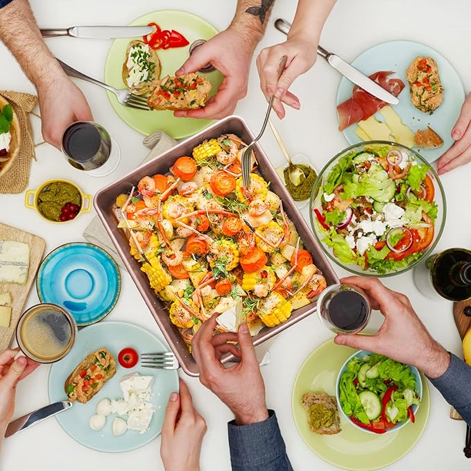 - Non-stick, Easy to Clean- The non-stick baking sheet has great mirror finish to reduce the risk of food sticking, easy to release the food while effectively reducing grease adsorption, makes it easy to clean up, just rinse the rectangle cake pan oven pan under water or run through the dishwasher