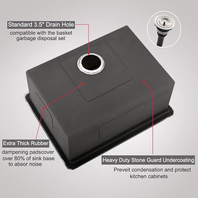 24 Inch Undermount Kitchen Sink, BoomHoze 24 x 19 Inch Sink Kitchen 16 Gauge Stainless Steel Workstation Undermount Single Bowl Outdoor