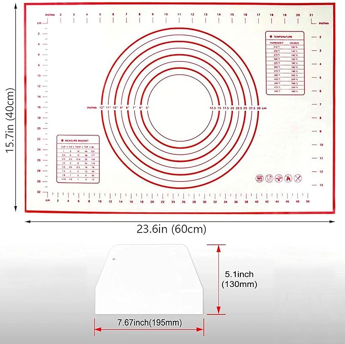 - 【Product Features】Our silicone pastry mats are non-slip, stain-resistant and non-stick. The dough roller can easily roll out the dough into an even crust. The pizza roller docker can can prick holes on the dough quickly and prevent bubbles during the baking process. The pizza wheel cutter cuts pizza safely and easily. A dough scraper can be used to cut dough and spreading.