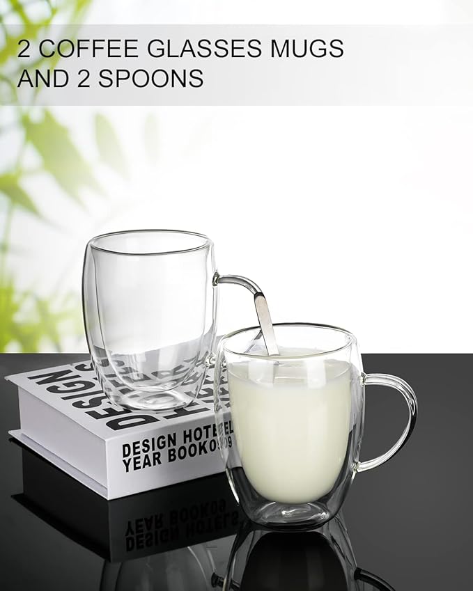 - ☕PROMISE - Comes with 2 double wall glasses + 2 spoons. If the product appears damaged, you can always contact us and get a free return or refund within 180 days.