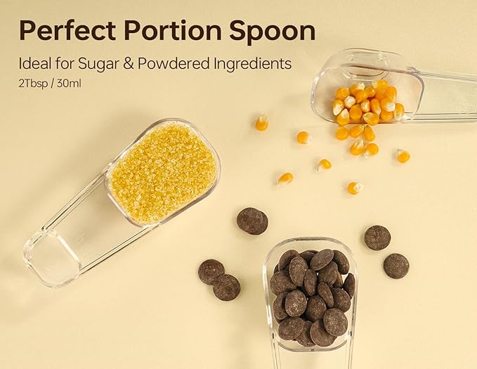 - BUILT-IN SCOOP HOLDER FOR CONVENIENCE: No more searching for a scoop! Scoop is conveniently attached onto the lid, keeping it accessible. Perfect for precise portion control when scooping protein powder, flour, sugar, coffee, baking ingredients, dry pantry staples, or pet food.