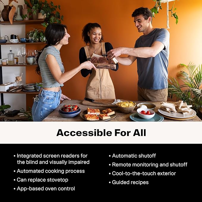 - ACCESSIBILITY FOR ALL: Brava is designed with inclusivity in mind; Its screen readers support the blind and visually impaired, while the app-based control allows remote cooking management; Features like automatic shutoff, cool-to-the-touch exterior, and guided recipes ensure safety, ease, and an effortless cooking experience for everyone, every time