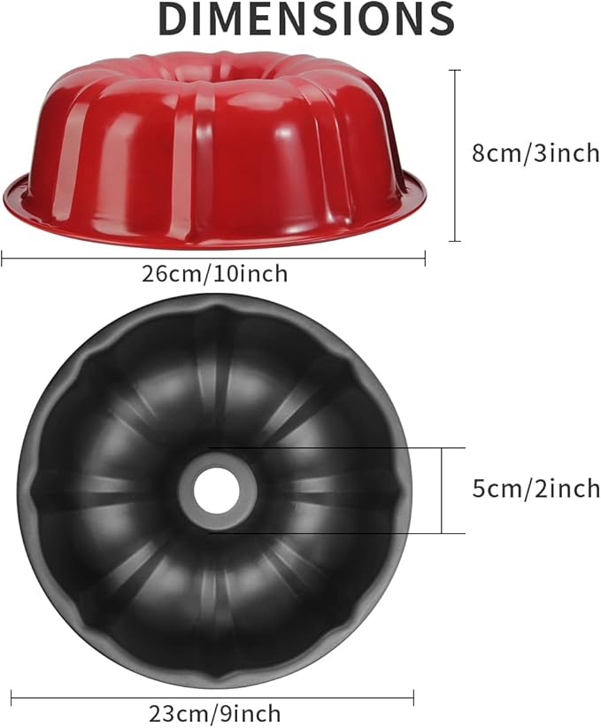 - LARGE BUNTE NONSTICK CAKE PANS: Including 2 pieces nonstick cake pans. 9 inches outernal diameter, 3 inches height. Large-capacity design, perfect for home and commercial use.