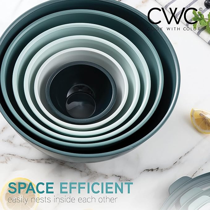 COOK WITH COLOR Mixing Bowls with TPR Lids - 12 Piece Plastic Nesting Bowls Set includes 6 Prep Bowls and 6 Lids, Microwave Safe Mixing Bowl Set (Teal)