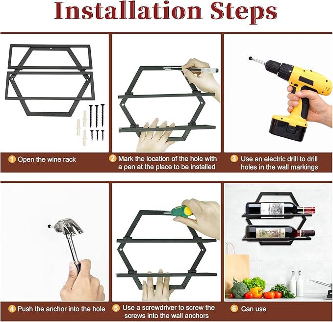 - 【Easy to Install】Enjoy quick and easy installation of your wall wine bottle and glass holder with the easy to use mounting hardware included, which can decorate any wall space and has an important decorative effect.