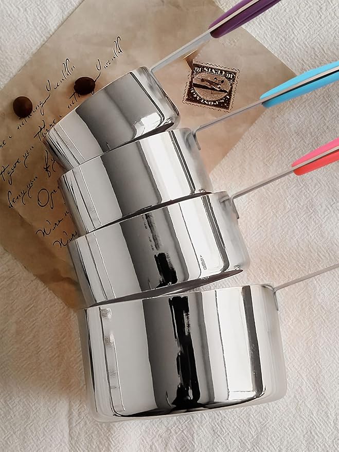 - Keep Your Kitchen Clean & Tidy: Stackable measuring cups and measuring spoons nest inside another for saving kitchen space. Detachable clip rings make measuring cups and spoons easy to organize and store in the drawer, or hang on a kitchen hook. It is sleek and classy. You also can hang them on your kitchen wall as decorations