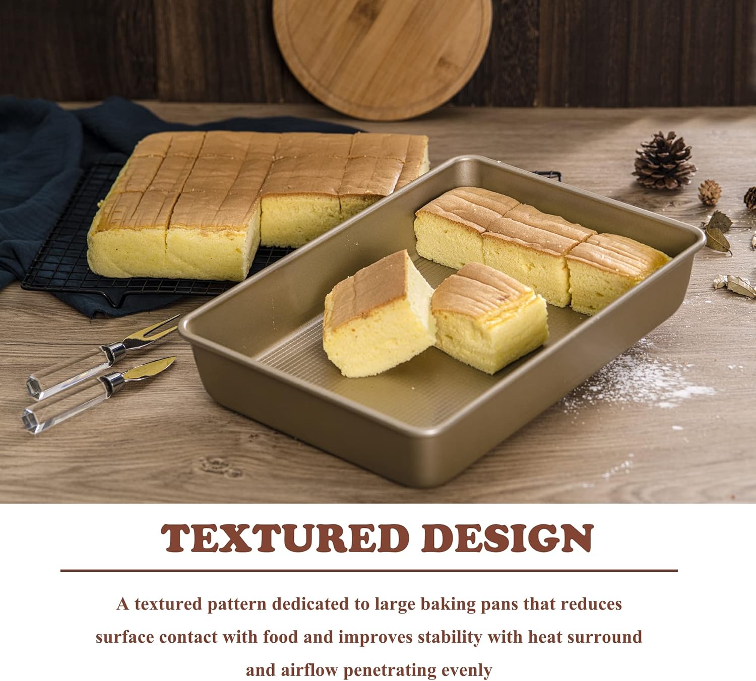 KitCom Bakeware Nonstick Carbon Steel Roaster with Flat Rack and V-Rack, 0.8MM Thickness Textured Base, Champagne Gold