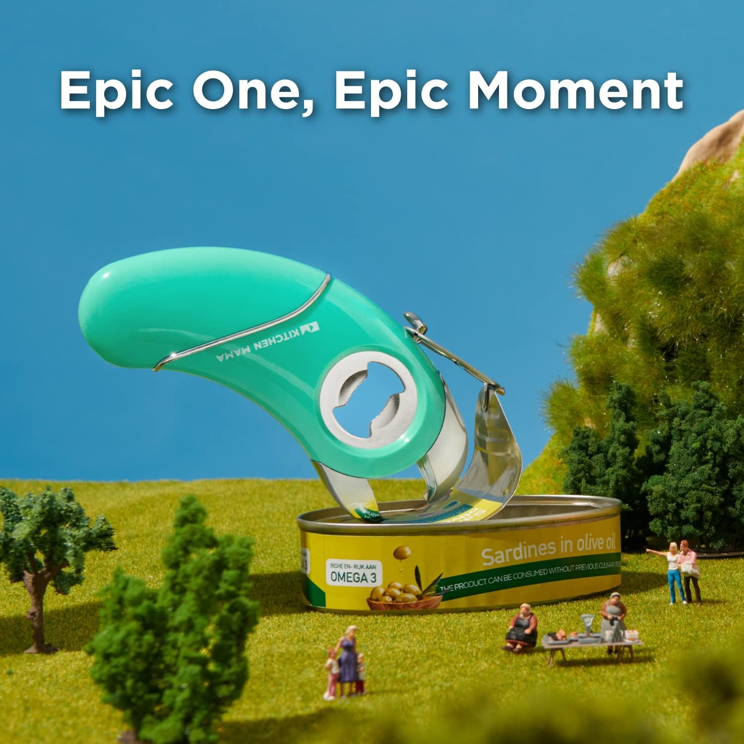 Kitchen Mama Epic One Multifunction Opener: Magnetic Bottle Opener, Beer Soda Opener, Effortless Jar Lid Opener for Seniors and Elderly with weak Hands and Arthritis, Essential Kitchen Gadget (Teal)