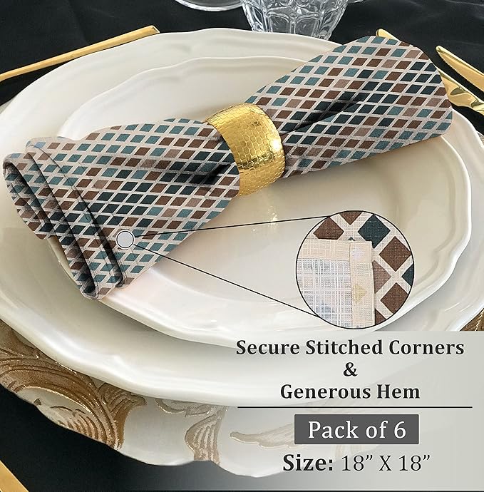 - Economy Pack: Our napkins cloth are Carefully cut and sewn with perfect Secure Stitched Corners and a generous hem. Our table Napkins came in a Value Pack of 6 Pieces measuring 18 by 18 inches each.