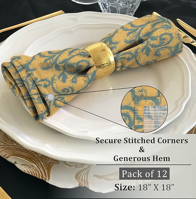 - Economy Pack: Our napkins cloth are Carefully cut and sewn with perfect Secure Stitched Corners and a generous hem. Our table Napkins came in a Value Pack of 12 Pieces measuring 18 by 18 inches each.