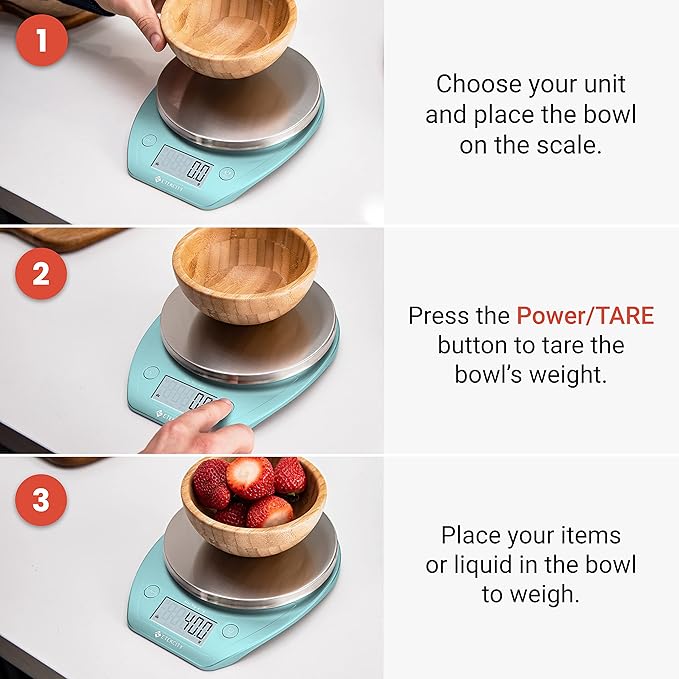 Etekcity 0.1g Food Scale, Bowl, Digital Grams and Ounces for Weight Loss, Dieting, Baking, Cooking, and Meal Prep, 11lb/5kg, Bright Blue