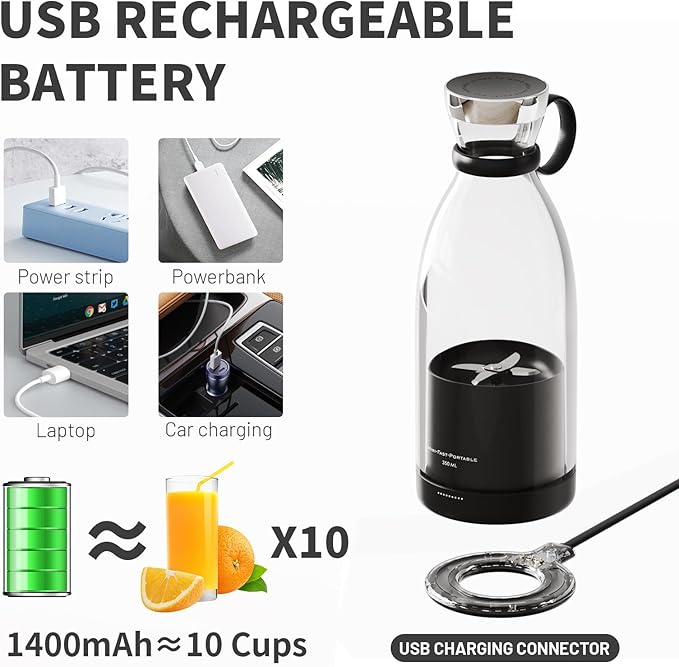 - 4 Blades Design: The portable blender for milkshakes and smoothies has a powerful motor base and 4 food-grade stainless steel 3D blades.The SUS304 Stainless Stell of cutter head made with food-grade electrolysis technology is durable and has excellent mixing ability, allowing the pulp to be quickly broken without losing dietary fiber