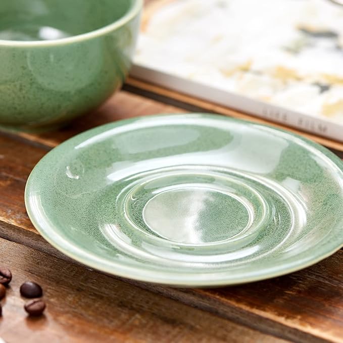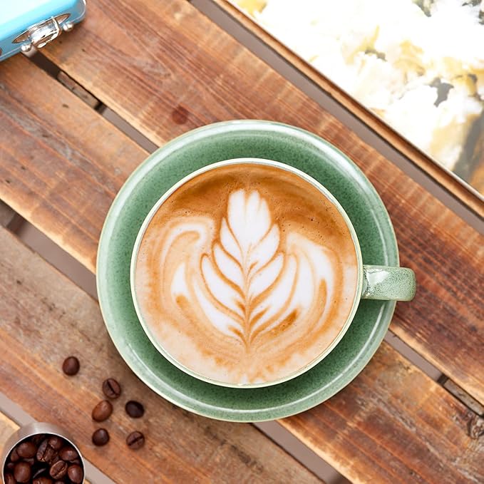 Vintage Design 12 oz Ceramic Latte Art Cappuccino Barista Cup with Saucer (Green)