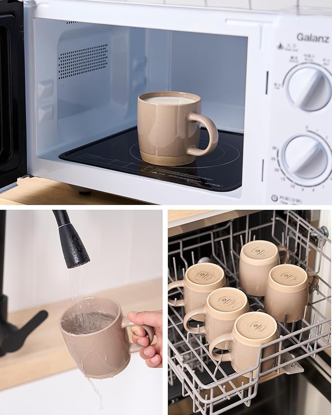 - 【WITHSTAND THE TEST OF TIME】These coffee mugs are made of organic and natural clay, fired at 2340℉ for 13.5 hours to make it sturdy,reliable and chip-resistant for long-term use.