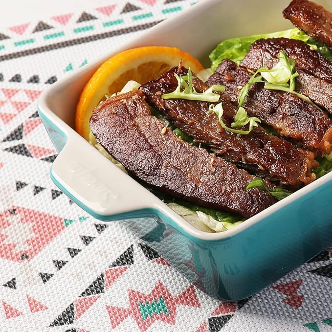 - 【Stylish Rectangular Baking Dish】The rectangular baking dish is equipped with a double handle design for easy food transport from the oven to the table. It is also a charming decoration in your kitchen and dining table which may impress your guests!