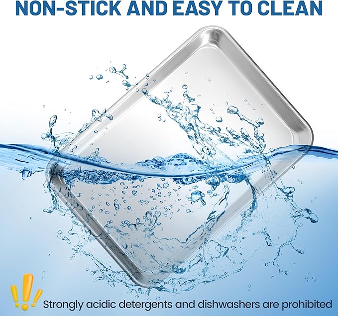 - Easy to Clean - The deep edges around can accommodate food, avoid the flow of juice during baking, and keep the oven clean and tidy. Wash by hand only, as automatic dishwasher detergents can cause discoloration of baking sheets