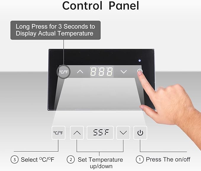 - Flavor Preserved, Simply:Our electric wine cooler ensures your wine is stored at the ideal temperature and humidity levels to preserve its flavor and bouquet. No more wasteful open bottles! Step1: Turn on the wine bottle chiller. Step 2: Set the Customizable temperature. Step 3: Place a suitable bottle (less than 3.74” in diameter) in the wine chiller. Step 4: The device begins to cool down. The LED will flash until the set temperature is reached. After that, it will be continuously illuminated.No longer need to add ice.