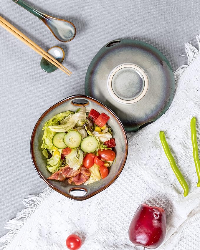 - Durability and Practicality: These bowls are made of durable ceramic, a type of lead-free and chip-resistant material. You can use these ceramic salad bowls for long-term daily use as they won't absorb odors, flavors, or colors. Professional ceramics are thick but not overly heavy and hold the heat, so your noodles won't cool off too quickly. It's also not too hot to hold from the bottom while eating.