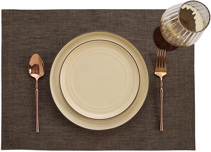 - ๐๐ผ๐บ๐ฝ๐ผ๐๐ถ๐๐ถ๐ผ๐ป ๐ฎ๐ป๐ฑ ๐๐ฟ๐ฎ๐ณ๐๐๐บ๐ฎ๐ป๐๐ต๐ถ๐ฝ : 100% Pure European Flax Linen Chambray Brown Fall Placemats ๐ฆ๐ฒ๐ ๐ผ๐ณ ๐ฐ - ๐๐๐ต๐ฒ๐ป๐ฎ | Handcrafted By Skilled Artisans.