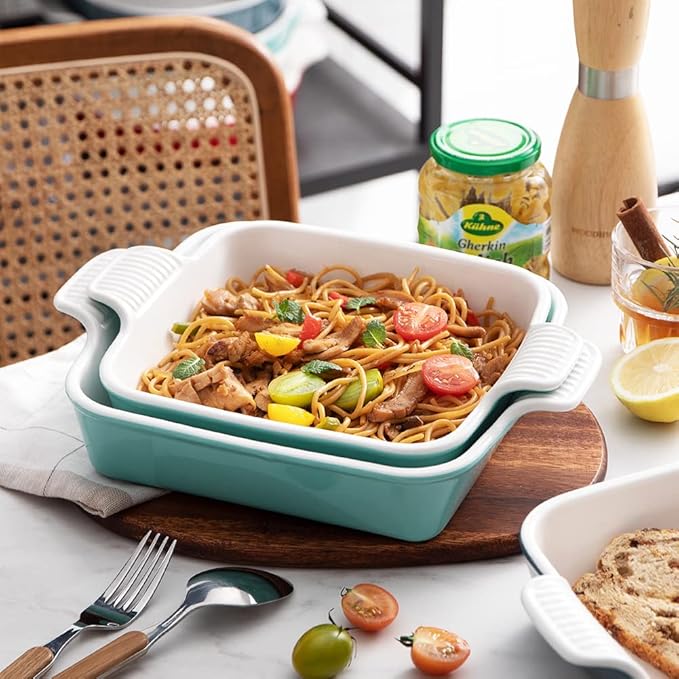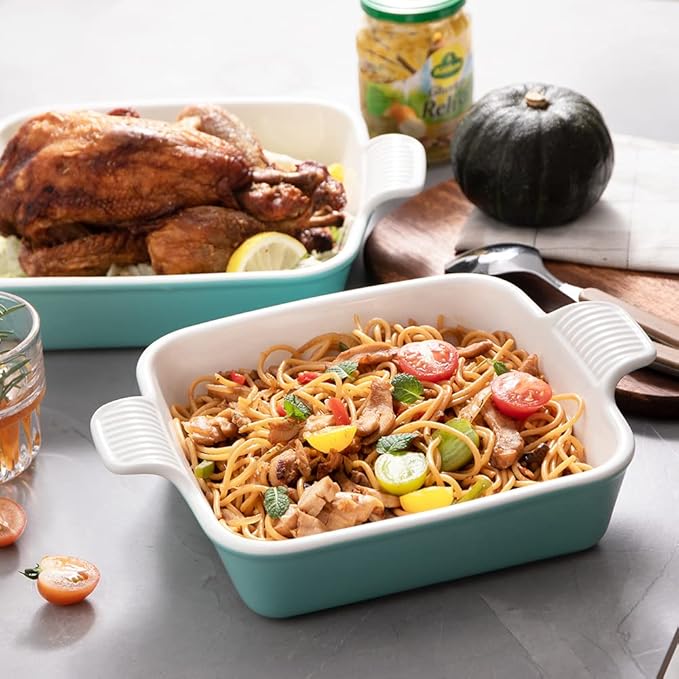- Convenient Double Handle - Side handles with striped design help ensure a firm grip during transportation, and make taking the baking dish out of the oven a breeze. It's beautiful design let you take the baking dish from oven to table.