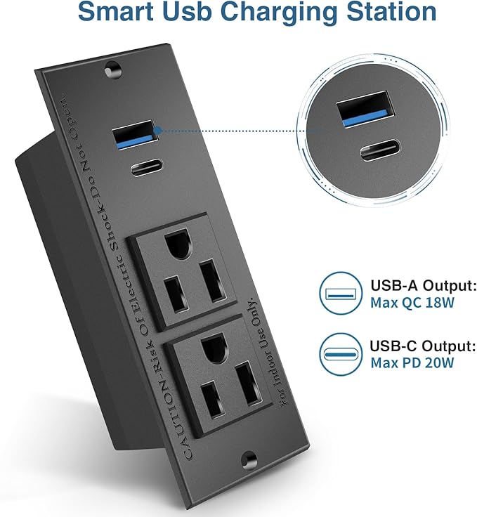 - 🍀Maggie's desktop recessed power strips are made of flame retardant ABS, PC material and PVC copper wire.