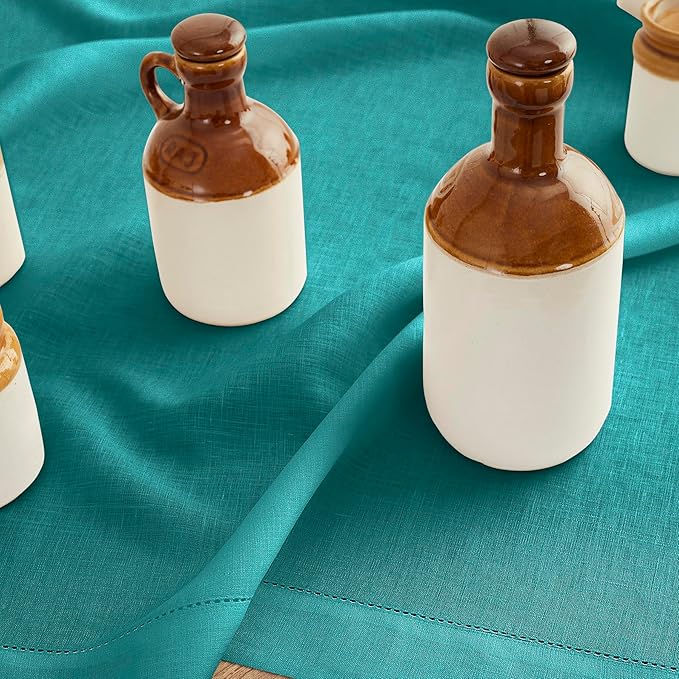 Solino Home Linen Placemats Set of 4 - Classic Hemstitch Teal Placemats 14 x 19 Inch - 100% Pure Linen Table Mats for Fall, Autumn, Thanksgiving, Christmas