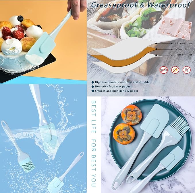 - 【Included in the package】: Large Springform Cake Pan 1Pcs + Wax Paper 50Pcs + 3Pcs Silicone Scraper set(Sky Blue)