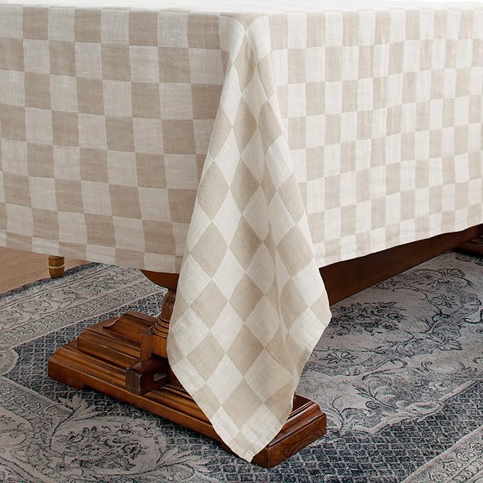Linen World 100% Linen Gingham Tablecloth,60x90Inch Buffalo Check Table Cloth,Tablecover for Wedding,Dining,Decorative Fall Halloween Christmas Thanksgiving Tablecloth