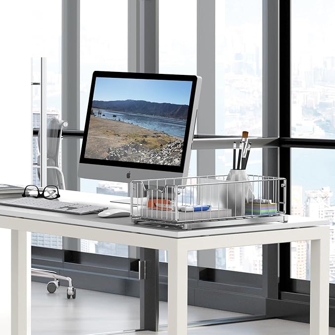Simple Houseware Pull-Out Cabinet Sliding Basket Organizer, 17.2" D x 9.7" W x 5" H – Chrome Finished, Ideal for Kitchen and Bathroom Cabinet Storage, Under Sink or Pantry Organization