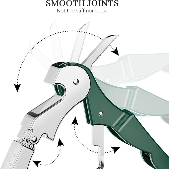 - MULTITOOL WINE OPENER: Made from 420 stainless steel and featuring a durable zinc alloy handle. It includes a classical double-hinged design that helps you pull the cork from the bottle with no effort. Featuring a built-in foil cutter and bottle cap opener, everything you need to open a bottle of wine or beer is conveniently and easily available to you in one tool