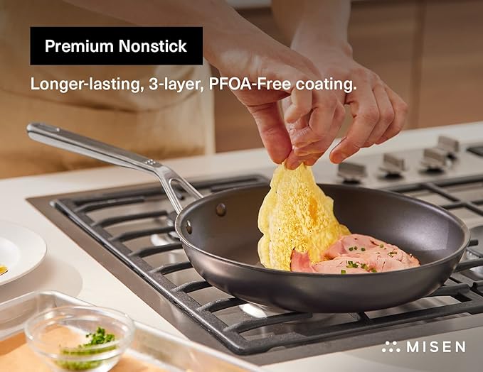 - Perfect for Tricky Cooking: Nailing omelets and fish? These pans are your pals. Misen's nonstick magic makes cooking tricky stuff easy.