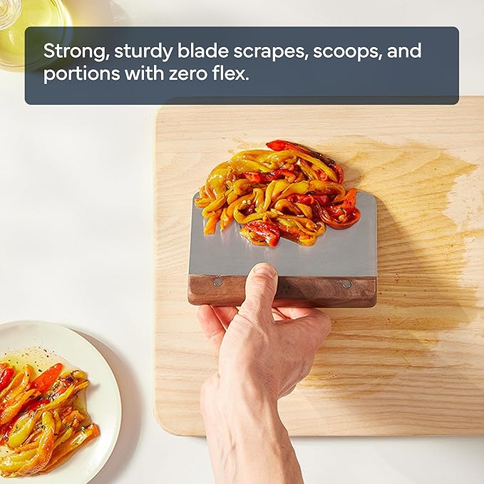 Misen Stainless Steel Bench Scraper - Versatile Food Scraper with Walnut Handle - Ideal for Kitchen, Pastry & Dough - Durable Cutting Board Scraper Tool - Effortless Transfer into Pots & Pans -Walnut