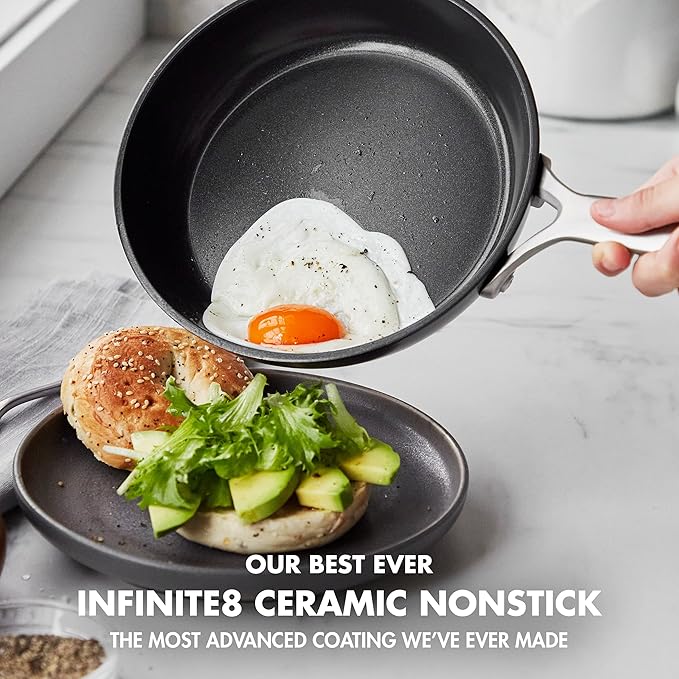 - CUTTING-EDGE CERAMIC NONSTICK: Infinite8, the most state-of-the-art ceramic nonstick GreenPan has ever created, an ultra-durable coating with layers of diamonds for cutting-edge performance and durability, metal utensil safe.