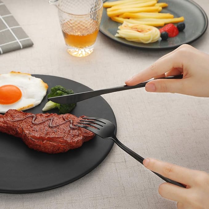 - Elegant Design: Modern black matte tableware set, satin finish, rounded curves, slender and elegant handle, right thickness and weight give you more comfortable grip