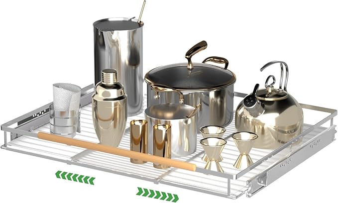 - SMOOTH SLIDE-OUT ORGANIZER: Industrial-grade ball bearing system ensures quiet and smooth sliding every time. Don't have to worry about noise when you pull out and push in