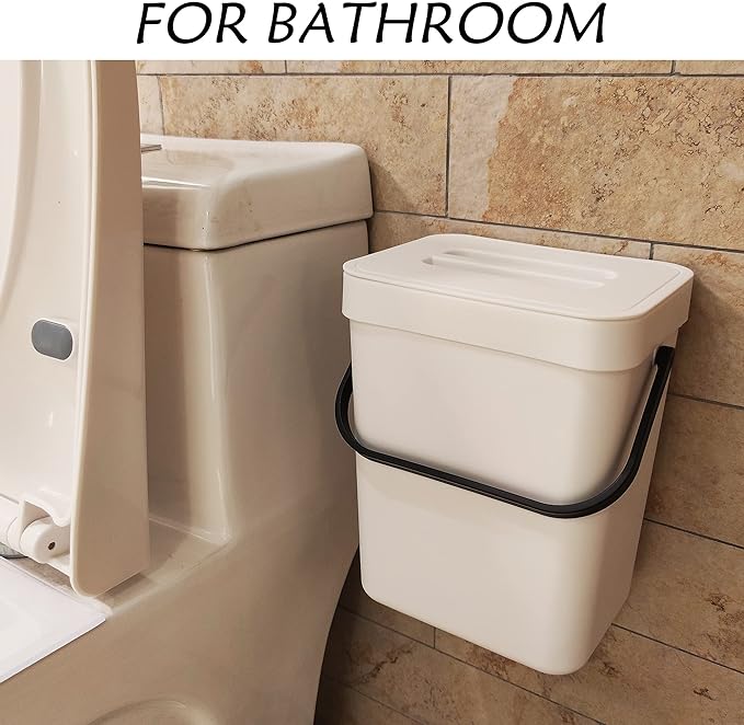 - Two Installation Options : Our kitchen trash bin can easily hang on the cupboard door with mount accessory included.It also can be hung on the wall by adhesive tape.You can use it as an under sink kitchen trash can, a wall-mount trash can, a countertop compost bin.