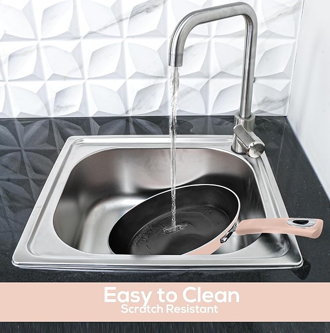 - SPICE UP YOUR COOKING AURA – The wobble-free bakelite handles are artistically designed and firmly riveted to the pans, for safety and comfort.