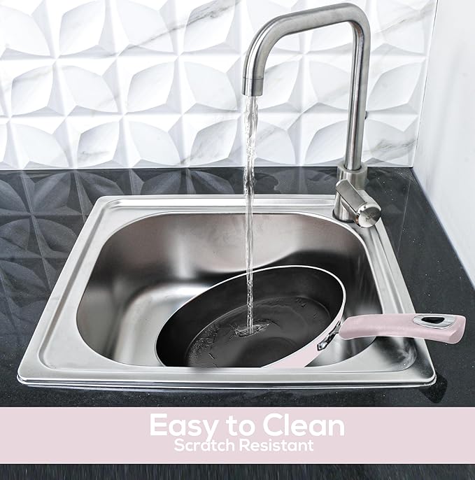 - SPICE UP YOUR COOKING AURA – The wobble-free bakelite handles are artistically designed and firmly riveted to the pans, for safety and comfort.