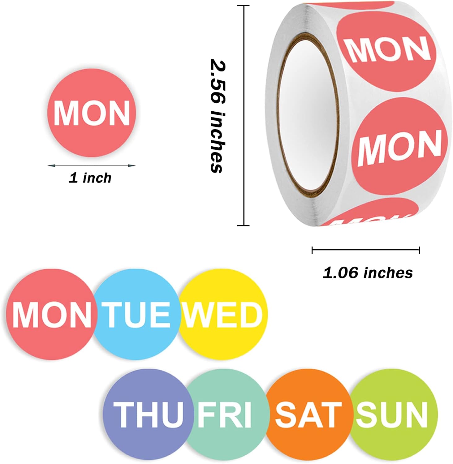 3500PCS 7-Day of The Week Sticker, 1" Round Day Dot Food Rotation Labels - Removable Date Stickers for Food Containers 7 Rolls Self Adhesive(500 Labels/Roll)