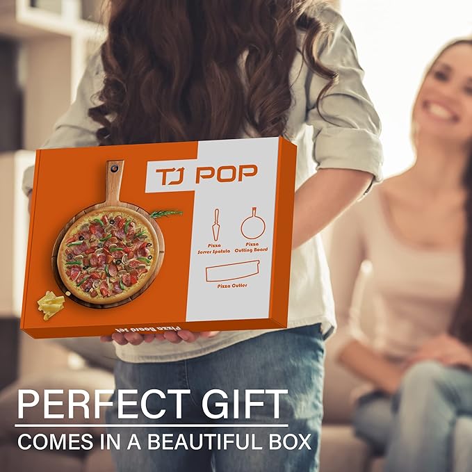 - 🍕Excellent Gift - This high quality acacia wood pizza board has a great look and is the perfect gift for friends at Christmas, Thanksgiving and New Year. It makes cooking and baking easier and more fun.
