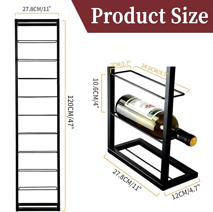 - Ample Bottle Storage: With an assembled size of 11” L * 5” W * 47” H, this assemblable wine rack offers space for ten standard wine bottles, including champagne and sparkling wine. Its design allows for convenient storage and easy access.