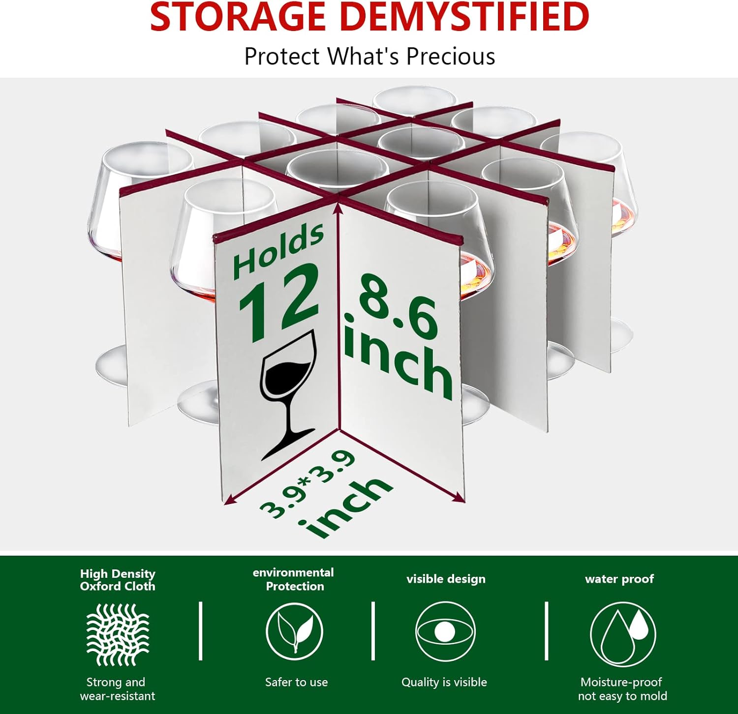 - [LARGE CAPACITY] Christmas stemware storage cases with lids can holds 24 of your favorite wine glasses or stemware up to 9.8 inch height.Each size:15.5" x 12.5"x 9.8".