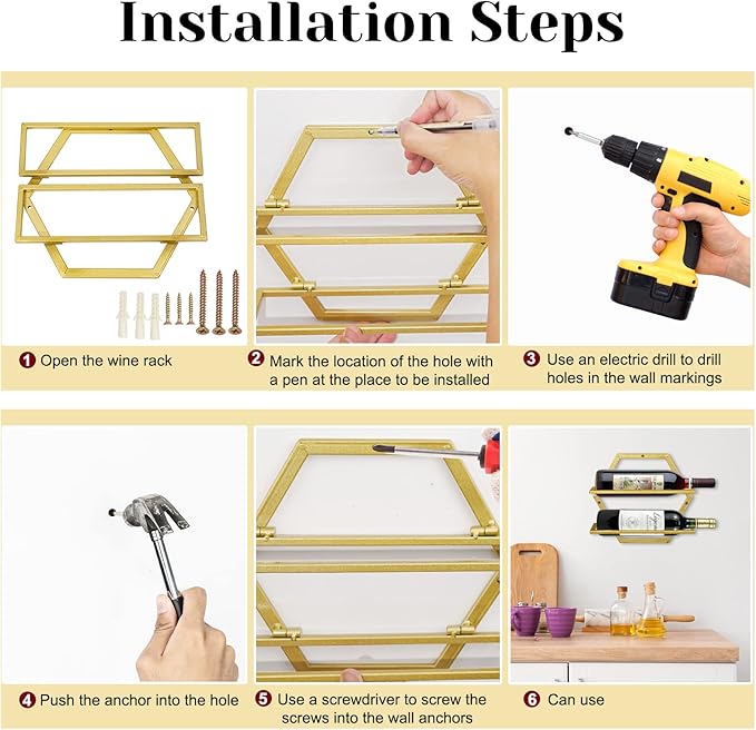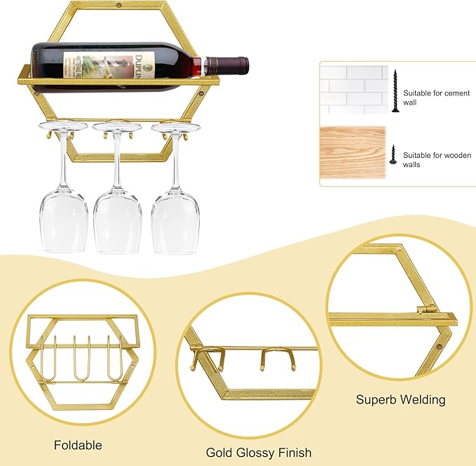 - 【Easy to Install】Enjoy quick and easy installation of your wall wine bottle and glass holder with the easy to use mounting hardware included, which can decorate any wall space and has an important decorative effect.