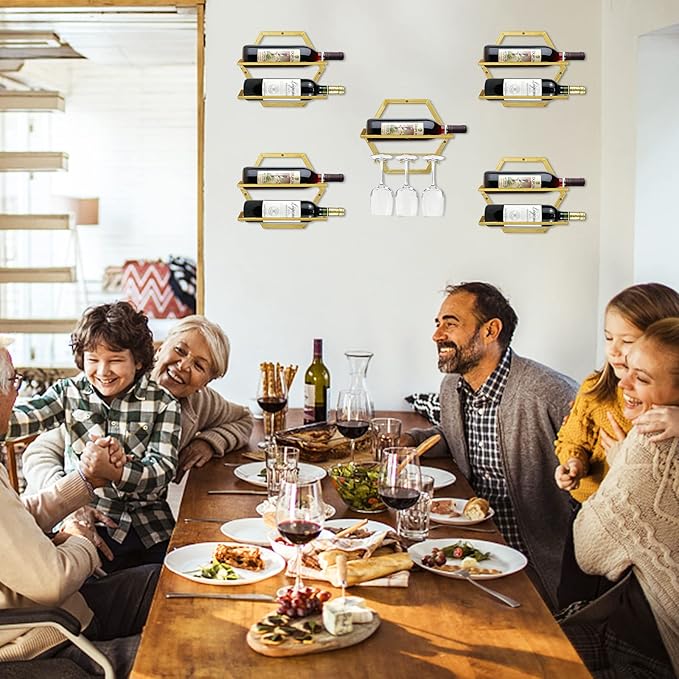 - 【2-IN-1 Wine Display Rack】Our wall mounted wine bottle holder presents your precious wine bottles, goblets in a stylish way, shows a unique artistic atmosphere. Wine rack holds 1 bottles of wine, or champagne, and 3-6 goblets.
