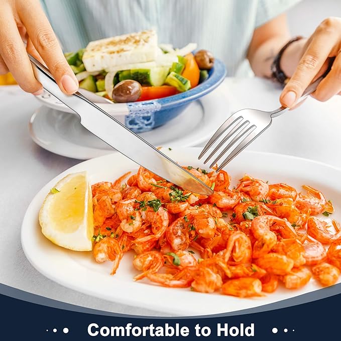 - Exquisite workmanship, highly mirror polished, smooth and shiny metallic sheen make cleaning effortless, each piece was carefully polished without rough edges and gaps, ensure the safety of your lip, practical eating utensils set would be a perfect surprise for housewarming, thanksgiving, Christmas