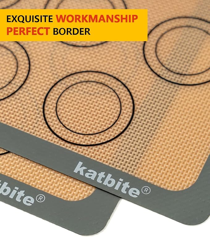 Macaron Silicone Baking Mats, Katbite Silicone Macaroons Baking Mat Set of 2 Half Sheet (11 5/8" x 16 1/2") Reusable & Nonstick Macarons Baking Supplies Silicone Bakeware Mats for Macarons Cookies