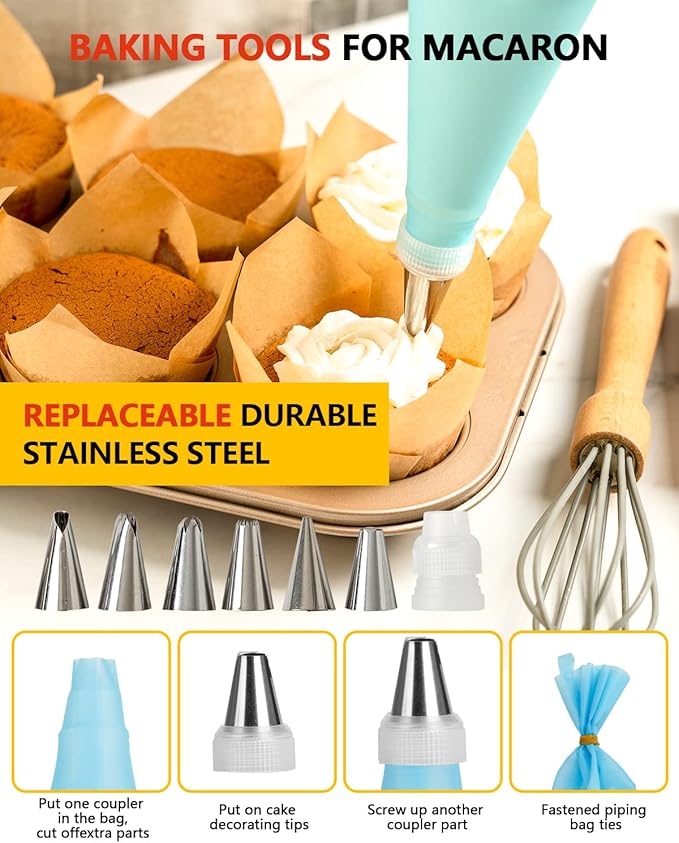 - šššš šššššššš ššššššš ššš - You will receive a professional macaron making set, including macaron silicon baking mat (11 5/8 "x 16 1/2") x 2, Piping Tip x 6, Piping Bag x 2, Coupler x 2 The printing on macaron baking mats allows you to accurately squeeze out the right size of batter. You can use these accessories to make your production process easier. With these, you can easily make delicious macarons, cookies, etc. This is your first step to becoming a baker.